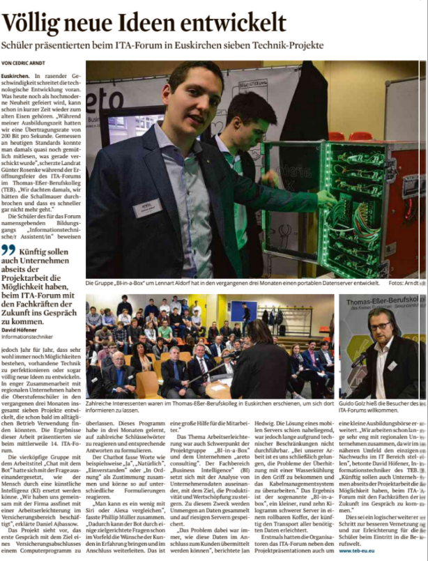 Mit dem ITA-Forum hat jeder Jahrgang ein Stück ITA-Geschichte geschrieben. Denn jedes Projekt und damit auch jedes ITA-Forum ist einzigartig. Hier finden Sie eine Auswahl an Presseberichten der vergangenen ITA-Foren.